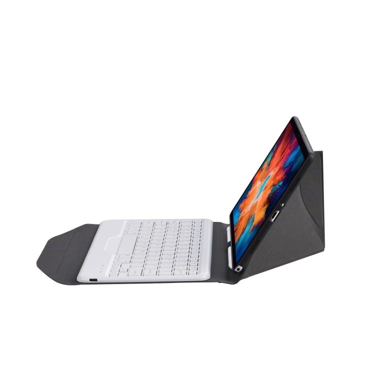 Eleganckie i stylowe etui z klawiaturą idealnie dopasowane do Twojego tabletu. Zabezpiecza urządzenie przed zarysowaniem, upadkiem czy zabrudzeniami. Skonstruowana tak aby umożliwić dostęp do wszystkich przycisków i portów bez wyjmowania urządzenia. Klawiatura łączy się z tabletem za pomocą Bluetooth. Zasilana jest wydajną wbudowaną baterią, którą ładuje się za pomocą kabla Micro USB i wystarcza na użytkowanie przez około 70h. Etui z klawiaturą jest lekkie i praktyczne. Zestaw taki tworzy z Twoim tabletem idealny, mobilny i elegancki pakiet do szkoły czy pracy. Klawiatura jest mocowana do etui magnetycznie. W dowolnym momencie można ją wyjąć aby używać samego etui. Etui posiada schowek na rysik abyś zawsze go miała przy sobie.