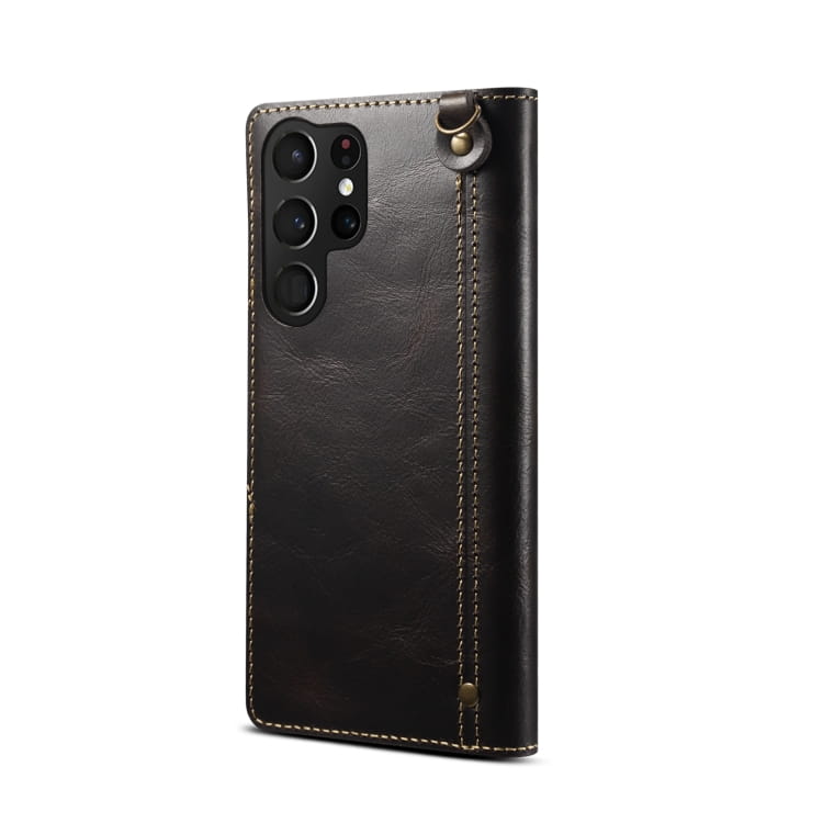 Denior Skórzane Etui Pokrowiec ze Smyczą do Samsung Galaxy S22 5G - czarne