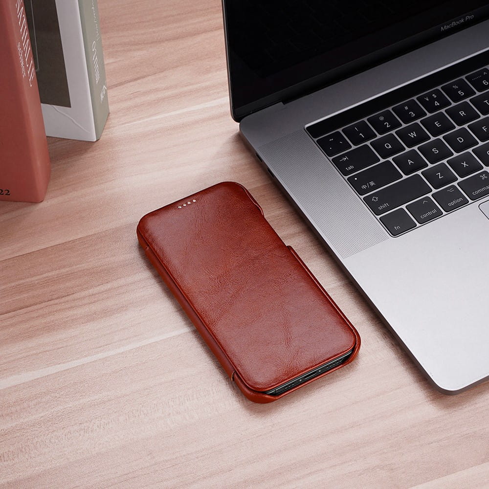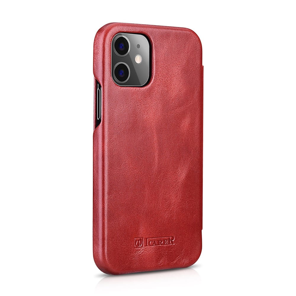 ICARER Skórzane etui z klapką na telefon iPhone 12 mini - czerwone