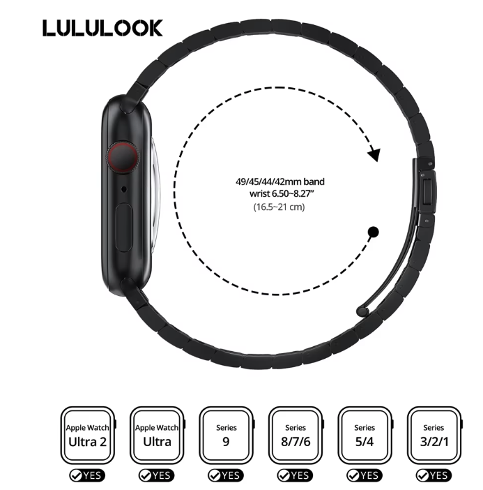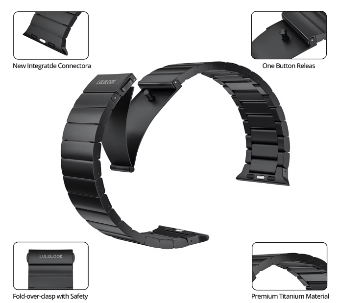 LULULOOK Tytanowa Bransoleta Panelowa do Apple Watch Ultra 49mm 46mm 45mm 44mm