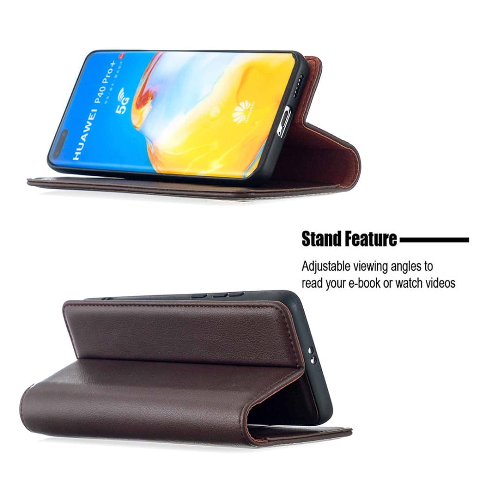 Magnetyczny futerał z prawdziwej skóry 2-w-1 do telefonu Huawei P40 Pro - brązowy