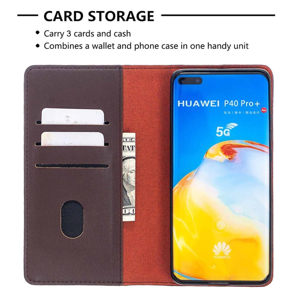 Magnetyczne Skórzane Etui Portfel do Huawei P40 Pro brązowe