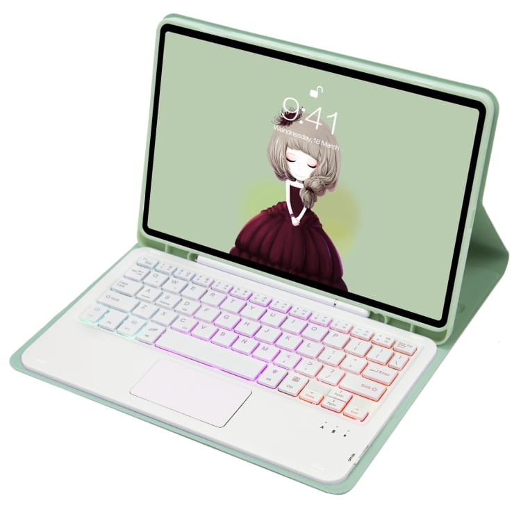 Miętowe Etui Bezprzewodowa Podświetlana Klawiatura z TouchPad do iPad 9/8/7 10.2, iPad Air 10.5, iPad Pro 10.5