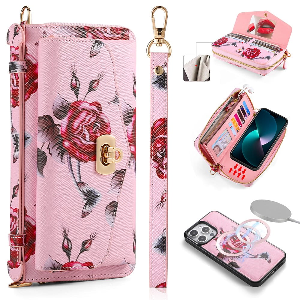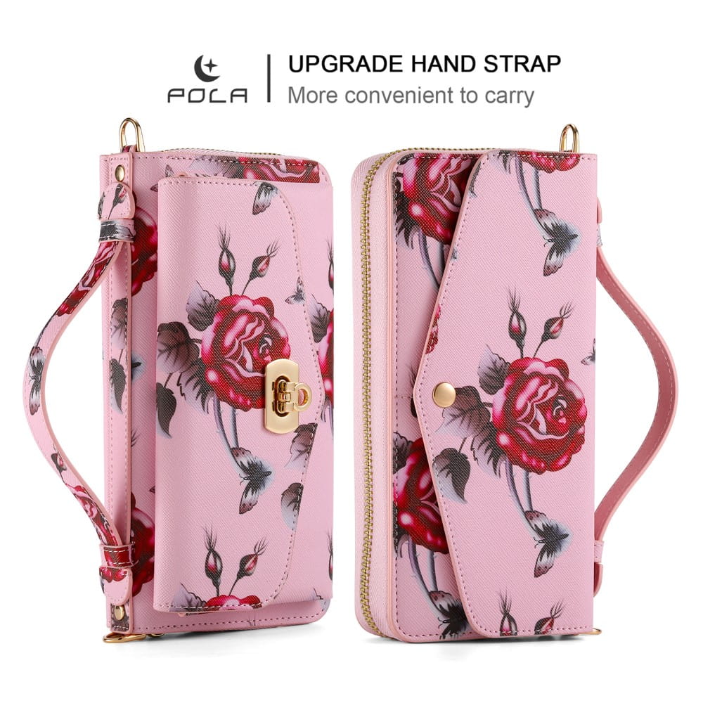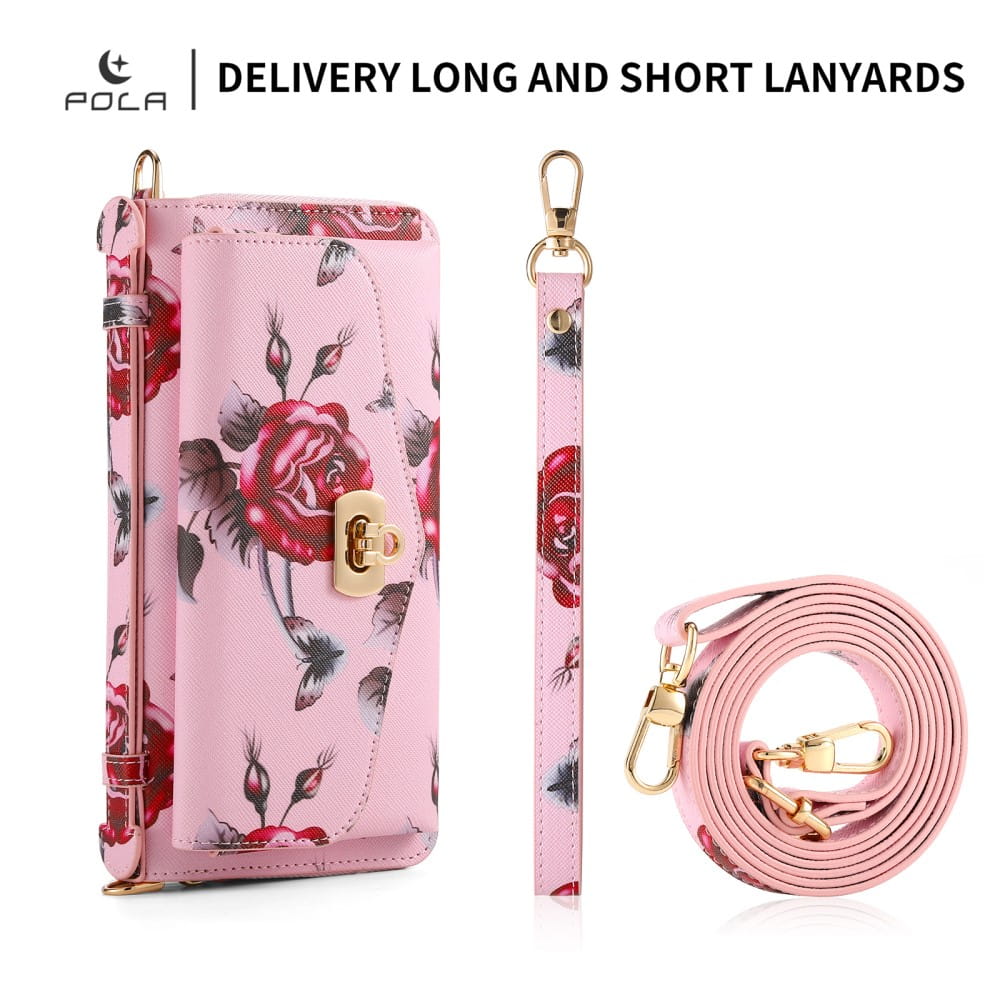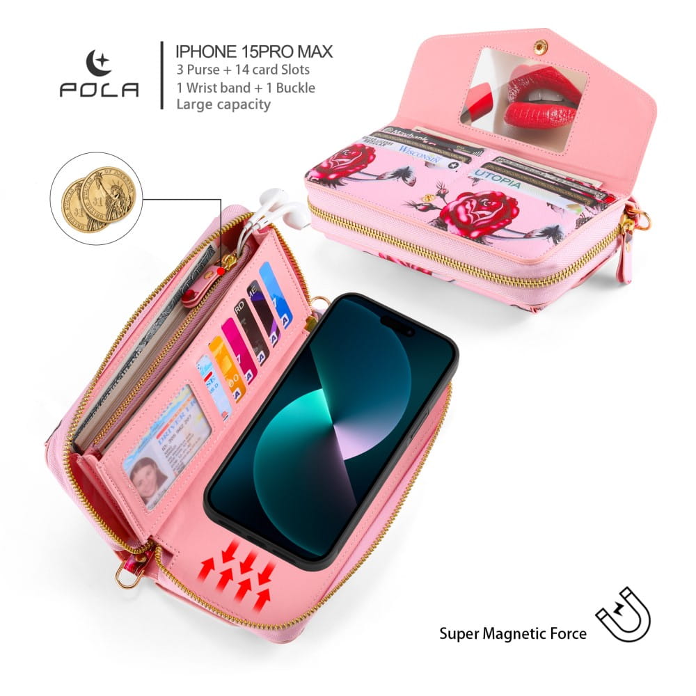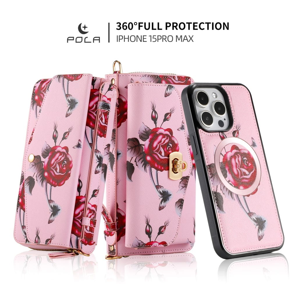POLA Etui Portfel Pokrowiec do iPhone 15 różowe w kwiaty