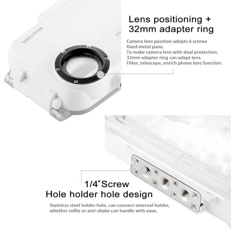 2. Wodoodporna głębokość 40 m/130 stóp, odpowiednia do fotografii podwodnej.