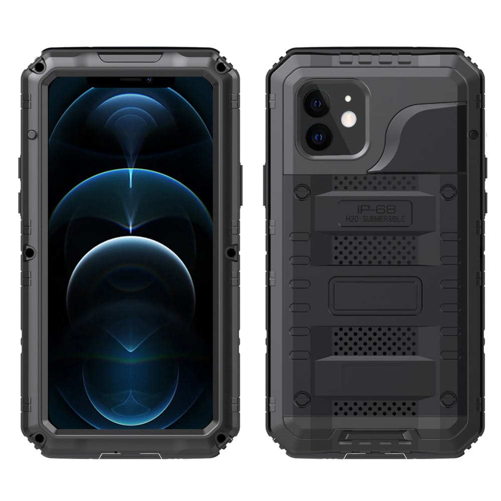 Etui wodoszczelne, odporne na wstrząsy, metal + szkło hartowane + tylna obudowa wzmocniona TPU do iPhone 12 Mini - czarne