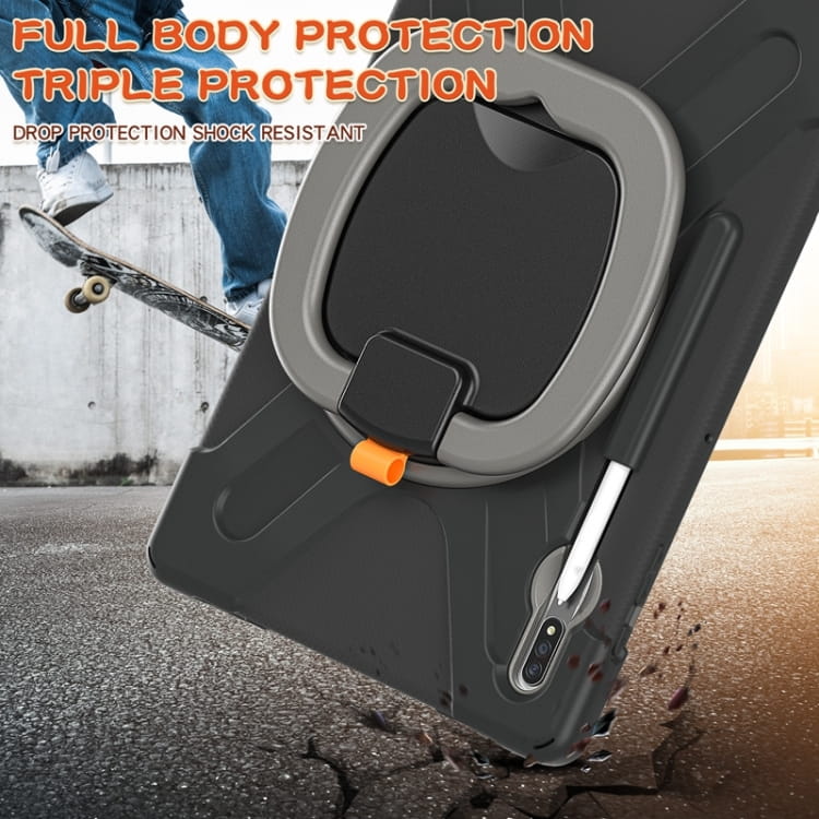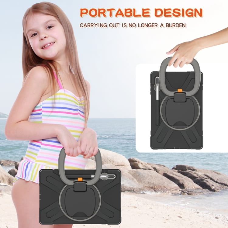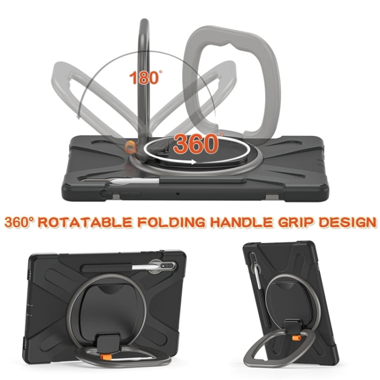 Pancerne Etui Obudowa z Paskiem i Uchwytem do Samsung Galaxy Tab S7 FE / Tab S7 Plus czarno-szare