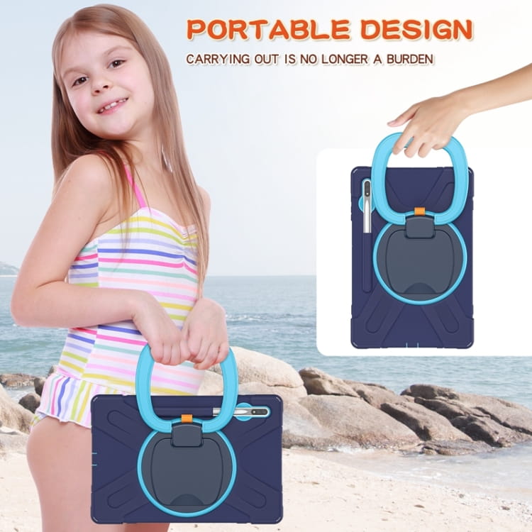 Pancerne Etui Obudowa z Paskiem i Uchwytem do Samsung Galaxy Tab S7 FE / Tab S7 Plus granatowe