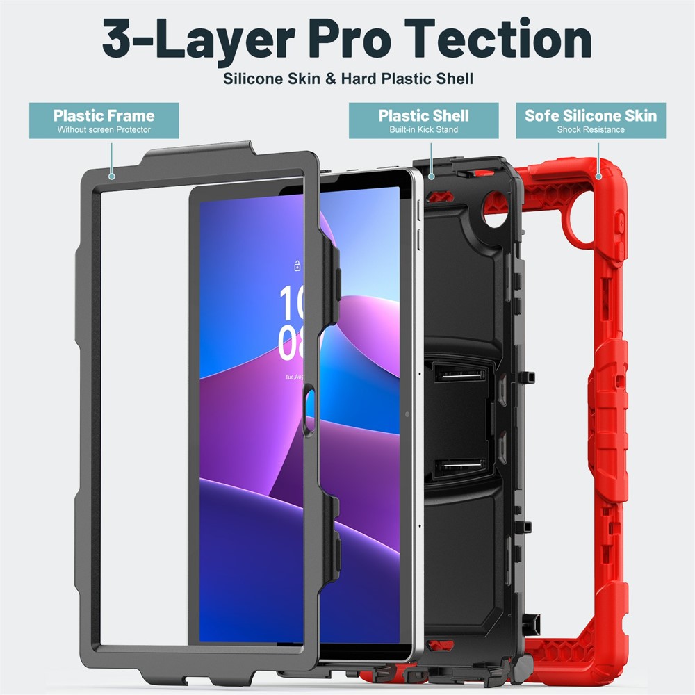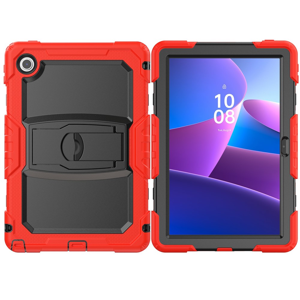 Mocne Etui do Lenovo Tab 10.1" 2025 TB-311XU TB-311FU — PC + silikon, stojak, odporne na wstrząsy z paskiem na ramię czerwone