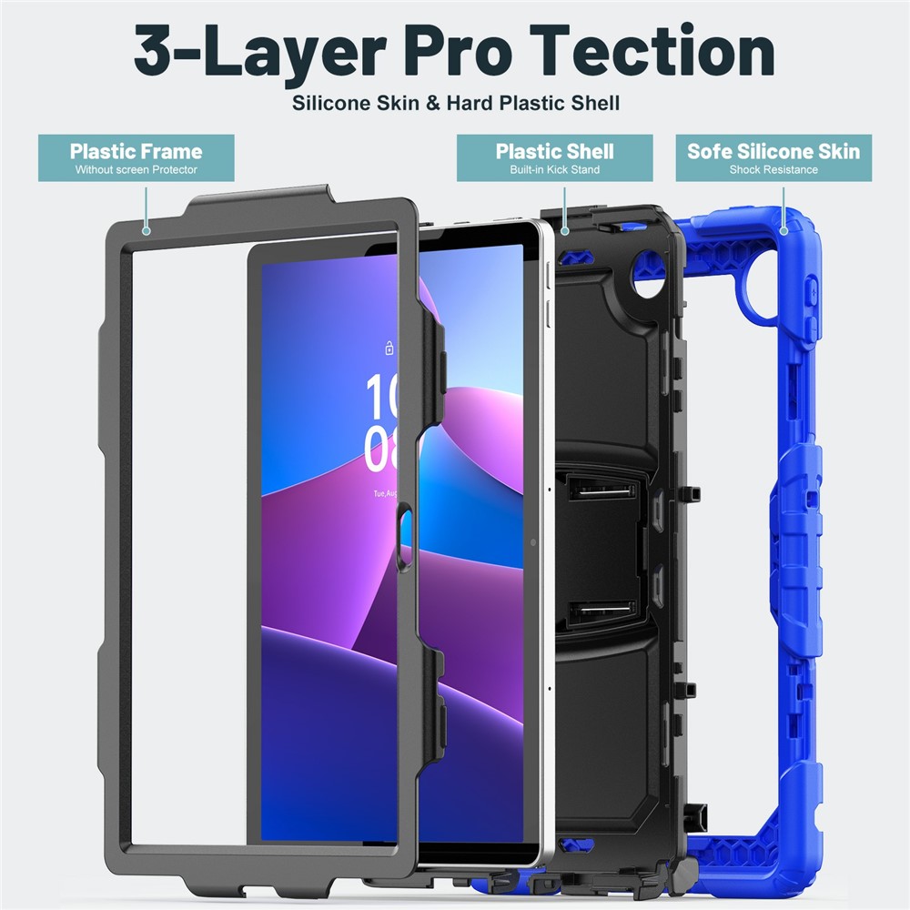 Mocne Etui do Lenovo Tab 10.1" 2025 TB-311XU TB-311FU — PC + silikon, stojak, odporne na wstrząsy z paskiem na ramię granatowe