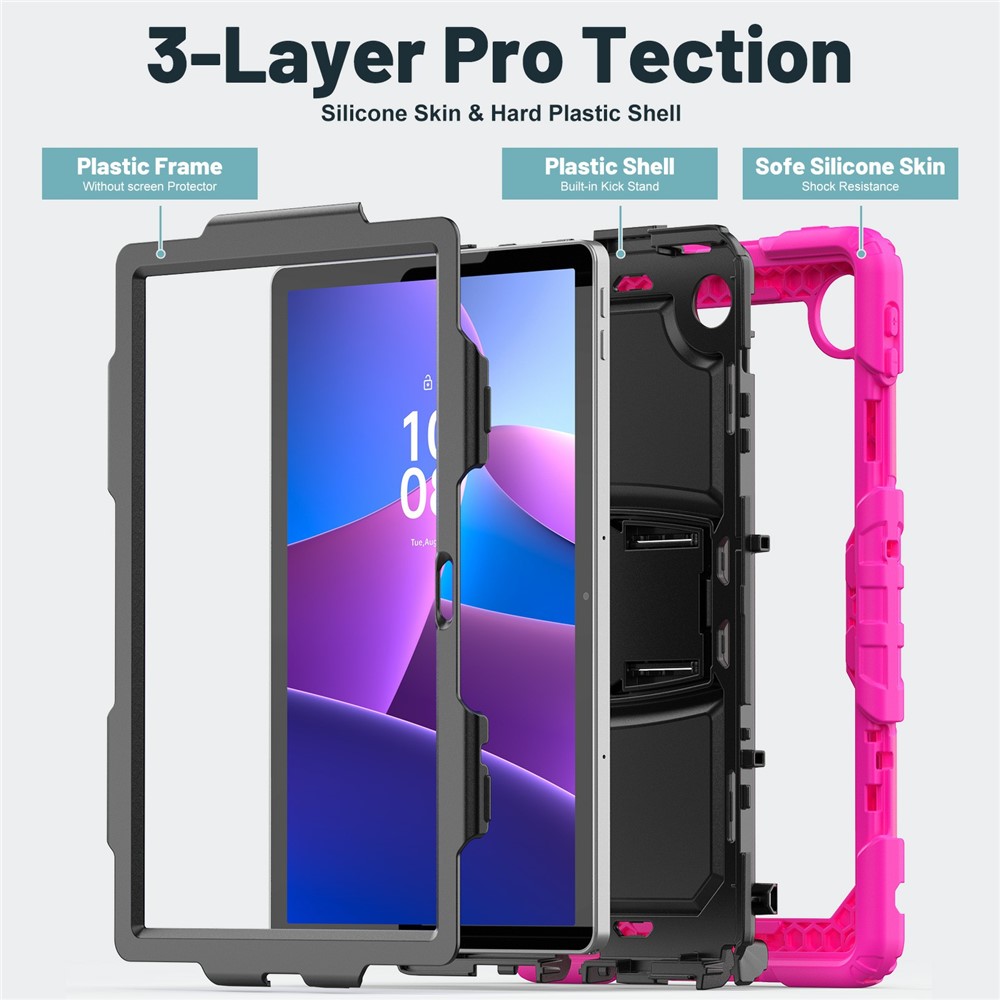 Mocne Etui do Lenovo Tab 10.1" 2025 TB-311XU / TB-311FU — PC + silikon, stojak, odporne na wstrząsy z paskiem na ramię różowe