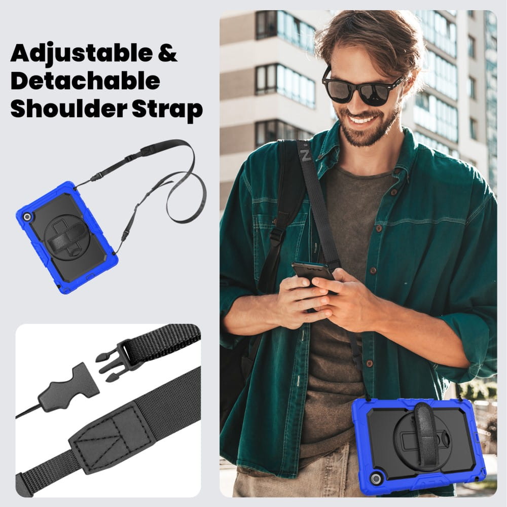 Pancerne Etui z Uchwytem i Paskiem do Lenovo Tab 10.1 2025 granatowe