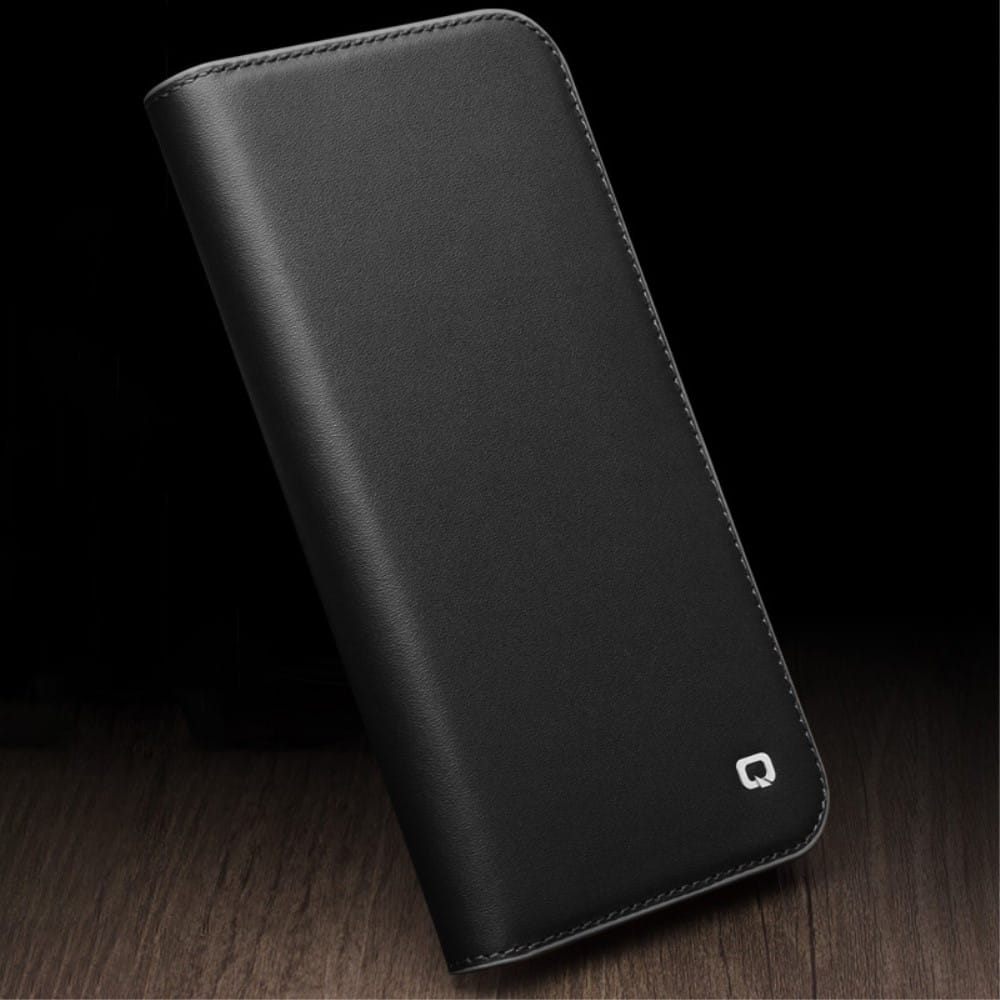 QIALINO Skórzane Matowe Eleganckie Etui Portfel do iPhone 15 czarne