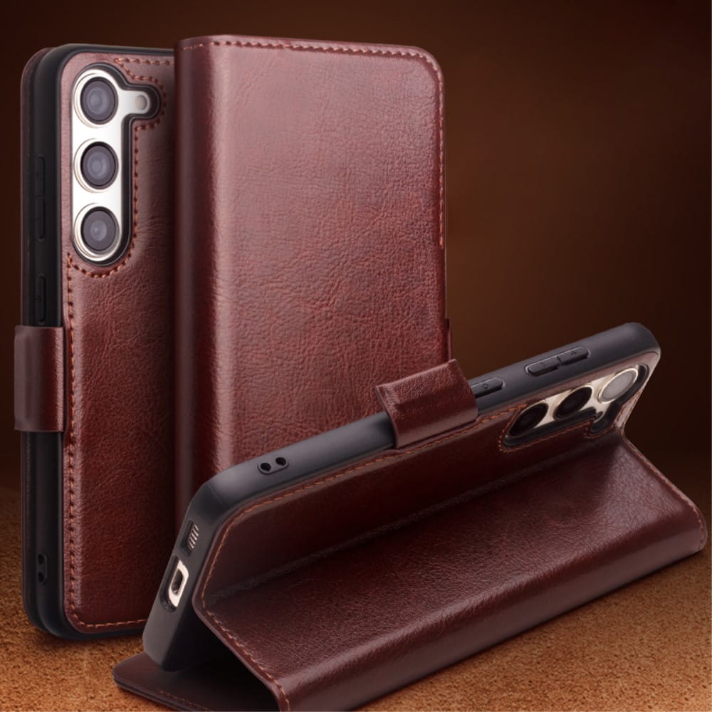 QIALINO Skórzane Eleganckie Etui Portfel do Samsung Galaxy S22 5G brązowe