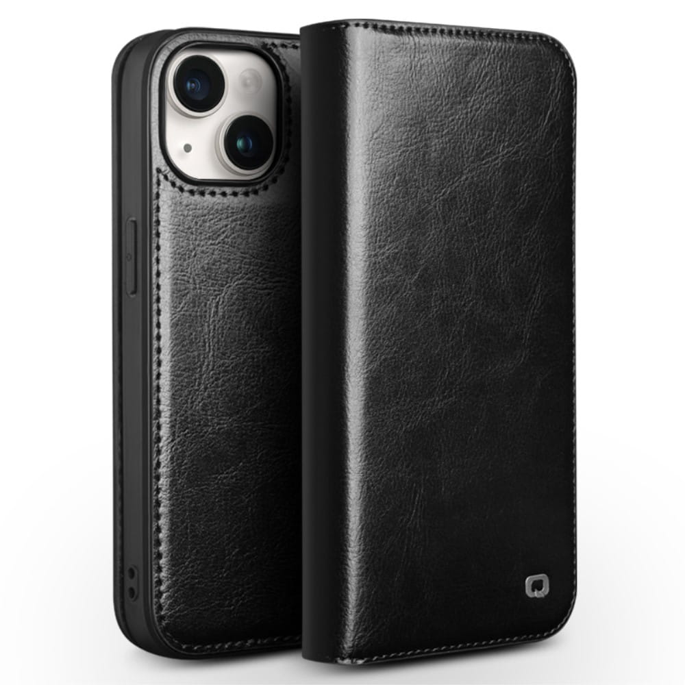 QIALINO Eleganckie Skórzane Etui do iPhone 15 czarne