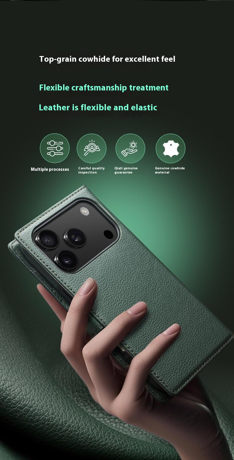 QIALINO Skórzane Eleganckie Etui Pokrowiec Portfel do iPhone 17 zielone