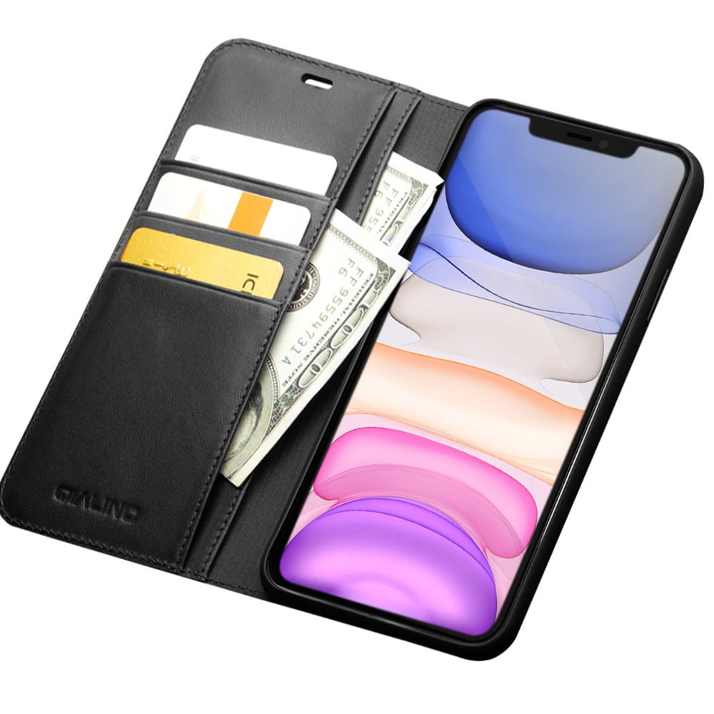 QIALINO Skórzane Eleganckie Etui do iPhone 11 czarne