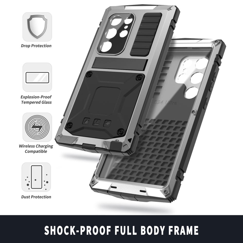 Połączenie aluminium, silikonu i szkła hartowanego na ekran zapewnia maksymalna ochronę dla Samsung Galaxy S24 Ultra 5G