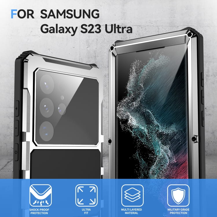 Połączenie aluminium, silikonu i szkła hartowanego na ekran zapewnia maksymalna ochronę dla Samsung Galaxy S22 Ultra 5G