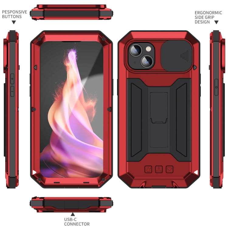 R-JUST Pancerne Etui Antywstrząsowe do iPhone 15 czerwone