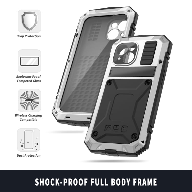 R-JUST Pancerne Etui Antywstrząsowe do iPhone 15 srebrne