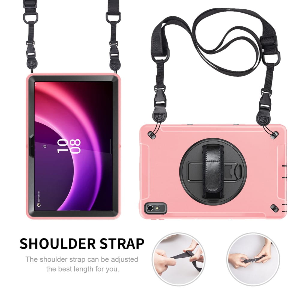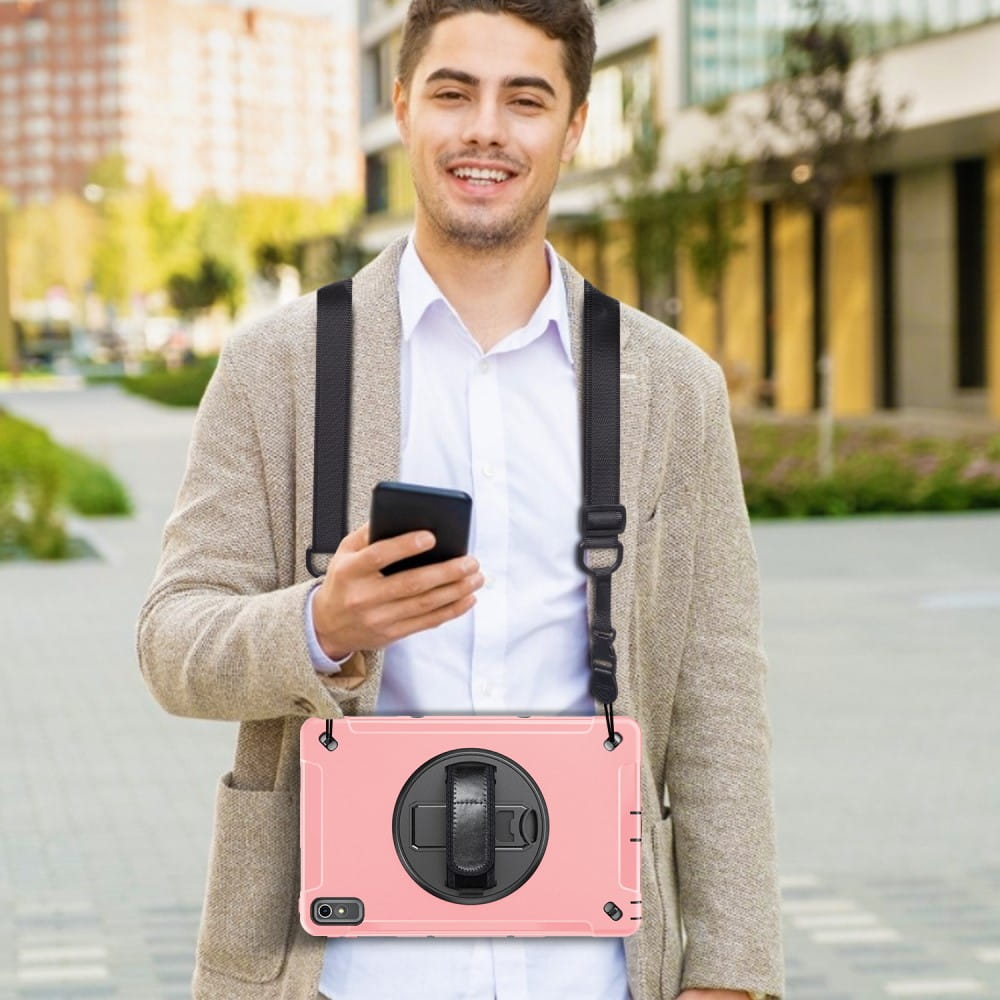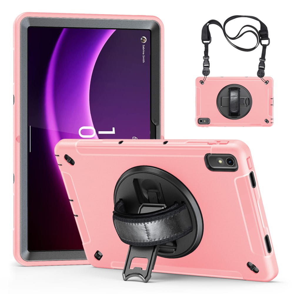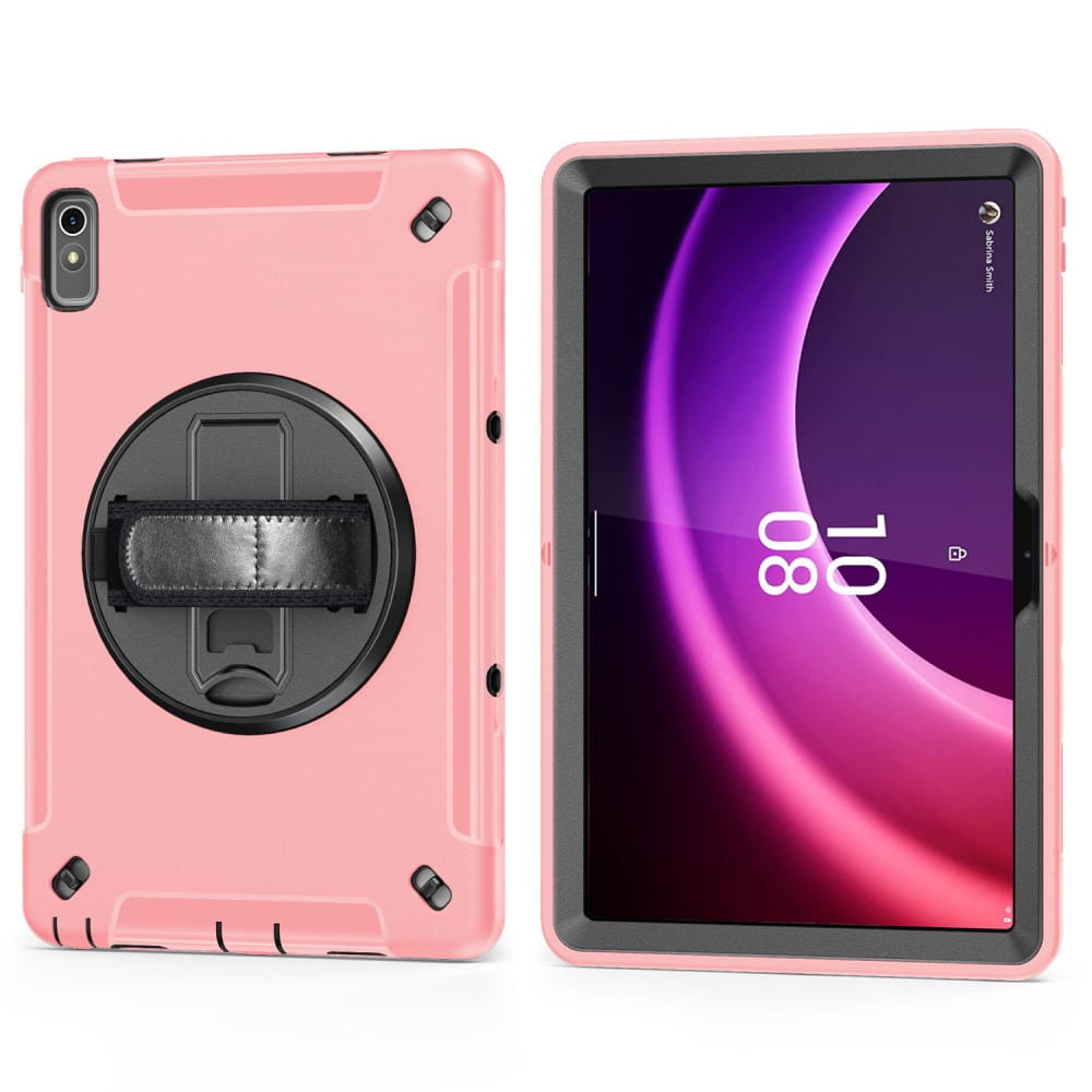 Pancerne Mocne Etui z Obrotowym Uchwytem, Paskiem i Podstawką do Lenovo Tab P11 różowe