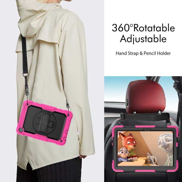 Shockproof Pancerne Etui z Paskiem, Uchwytem do Lenovo Tab M10 10.1 3 gen różowo-czarne