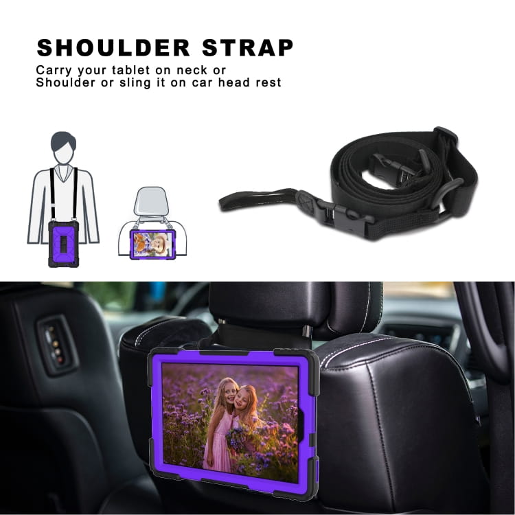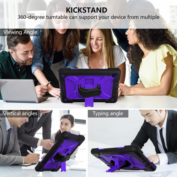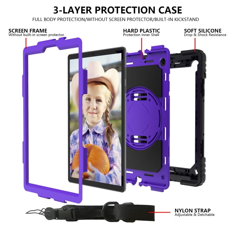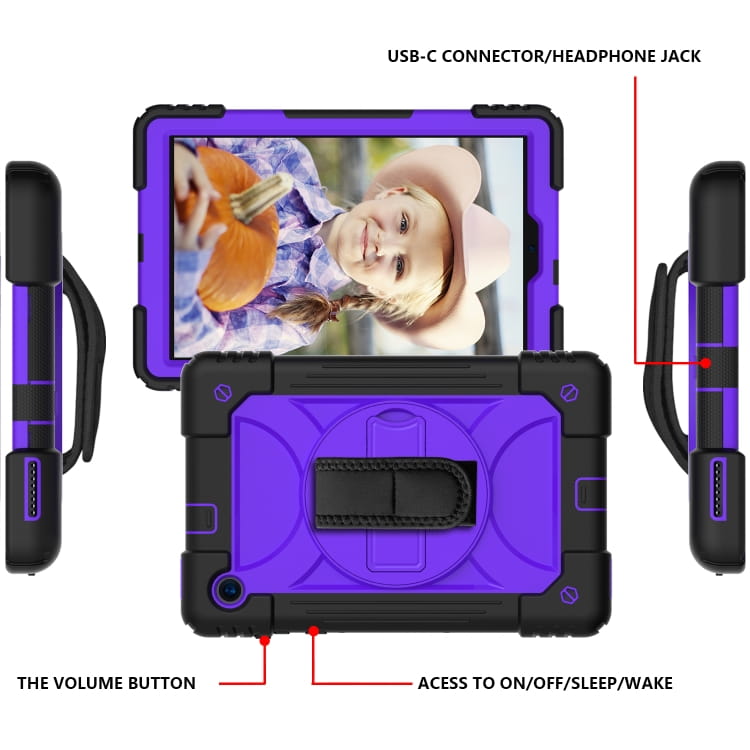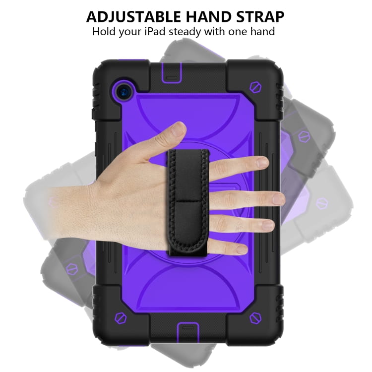 Shockproof Pancerne Etui z Paskiem, Uchwytem do Lenovo Tab M10 Plus 10.3 czarno-fioletowe