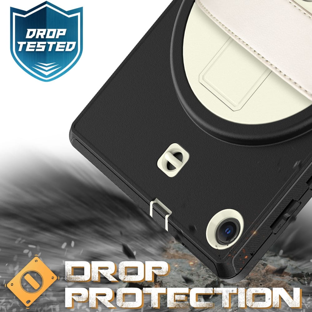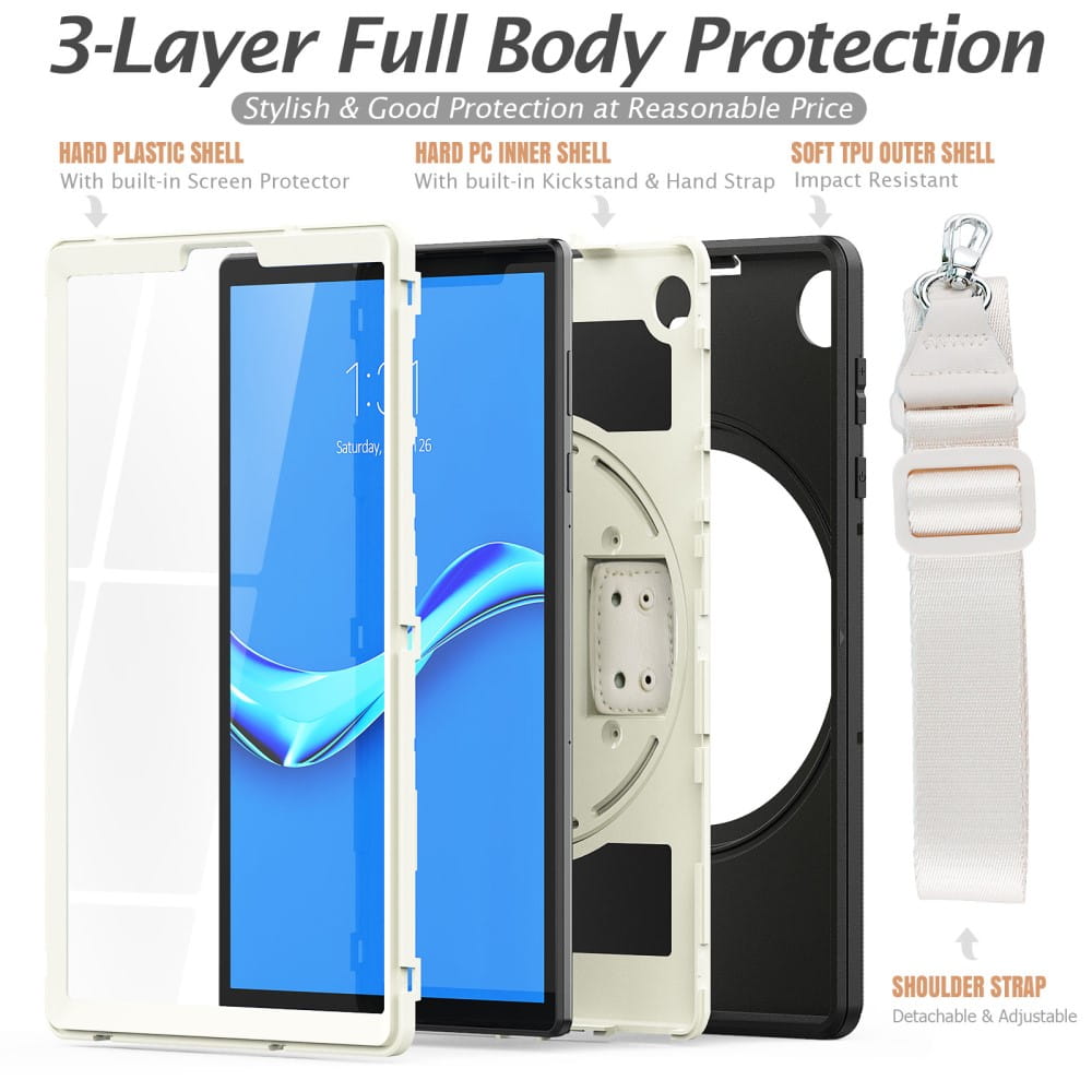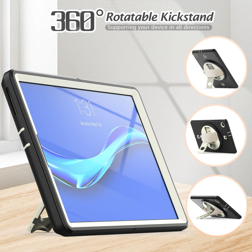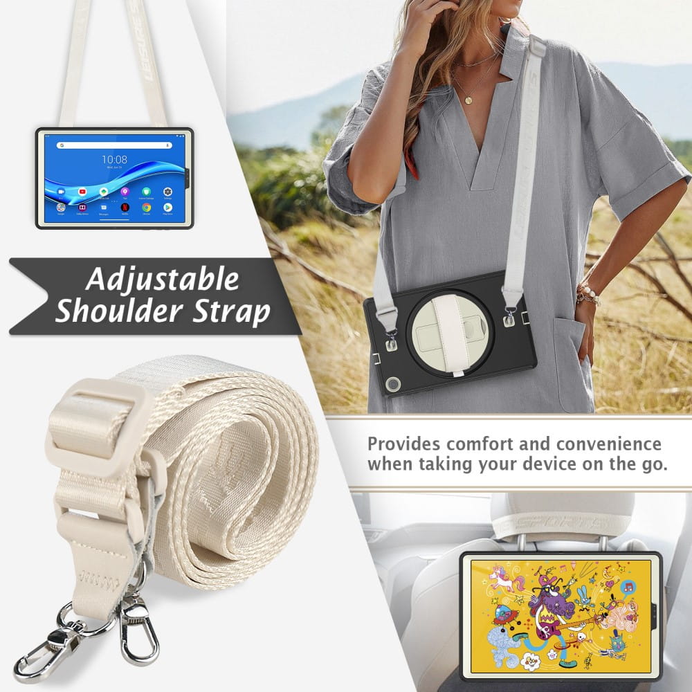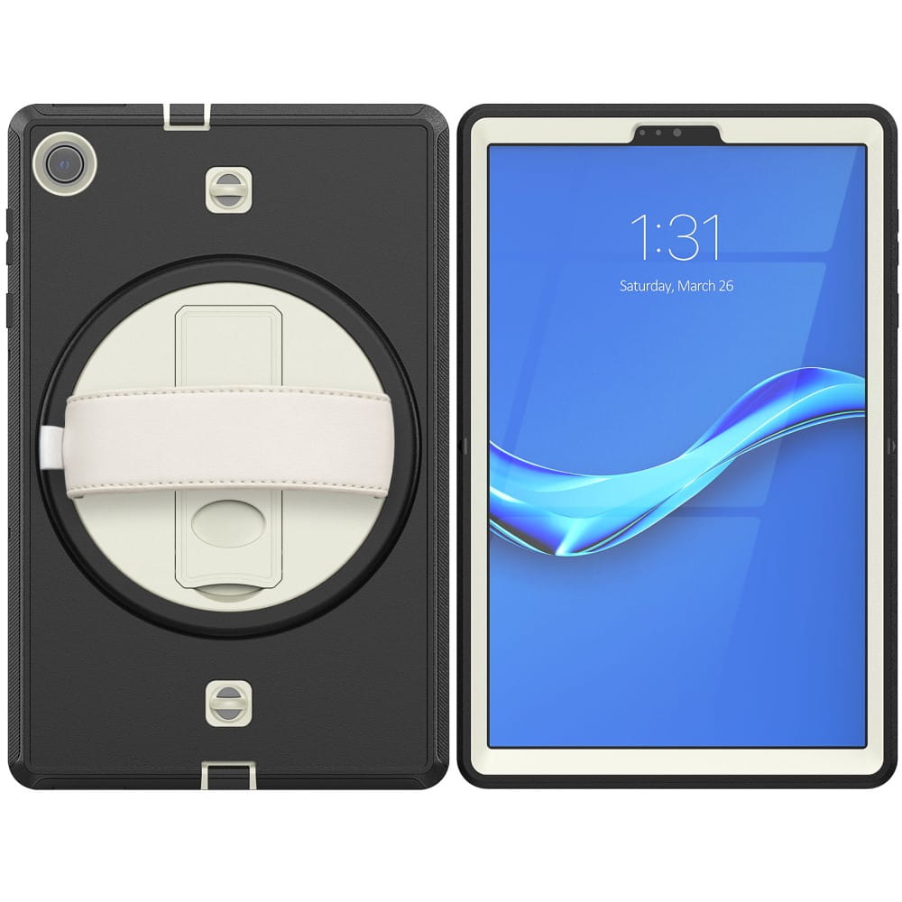 Shockproof Pancerne Etui z Paskiem, Uchwytem do Lenovo Tab M10 Plus 10.3 czarno-kremowe
