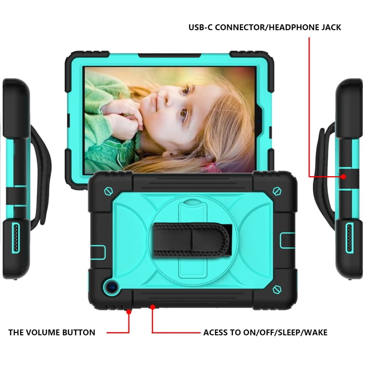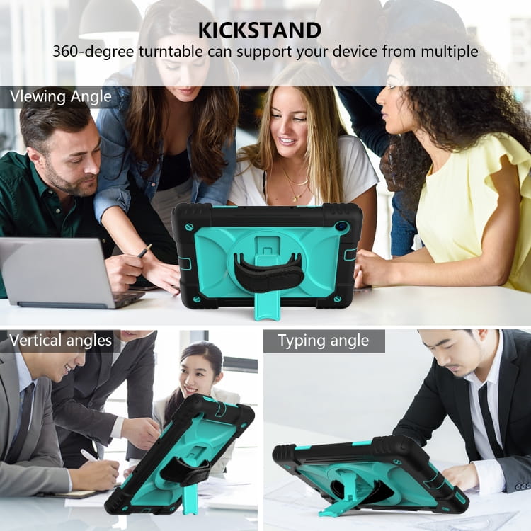 Shockproof Pancerne Etui z Paskiem, Uchwytem do Lenovo Tab M10 Plus 10.3 czarno-miętowe