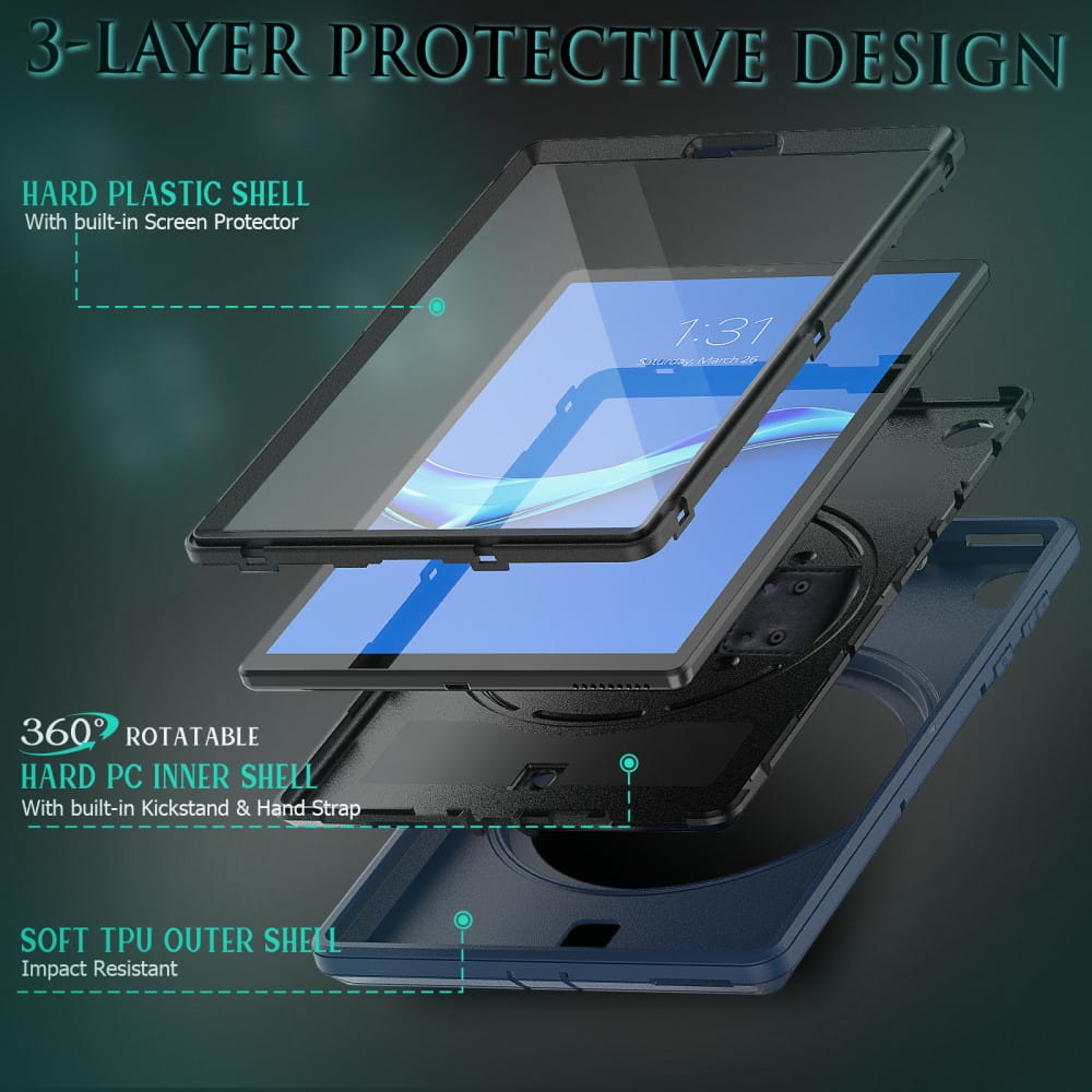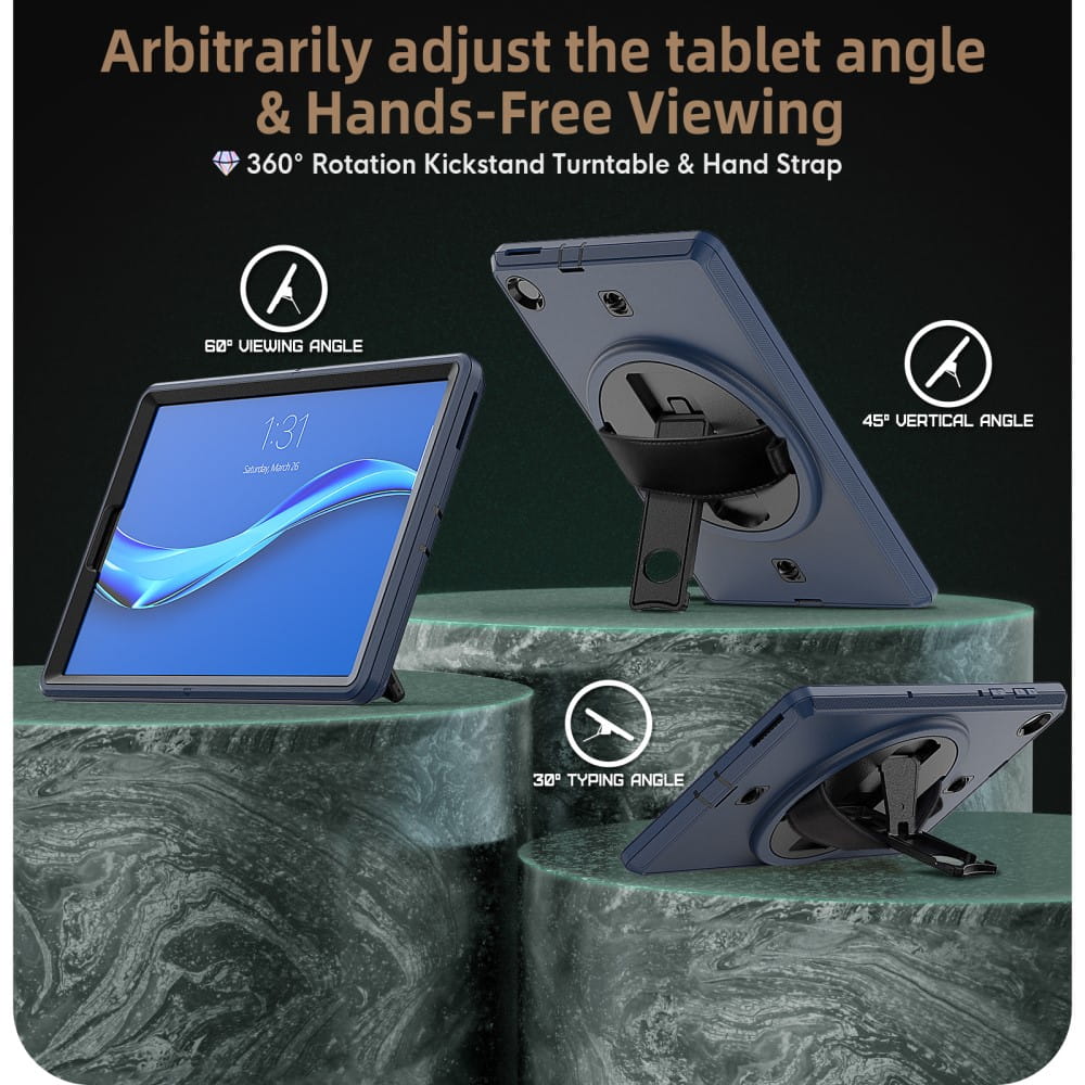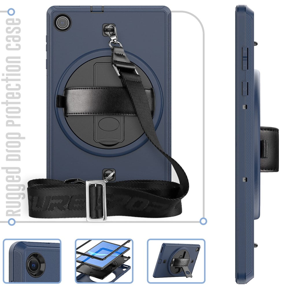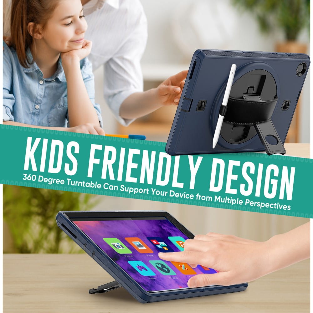 Shockproof Pancerne Etui z Paskiem, Uchwytem do Lenovo Tab M10 Plus 10.3 granatowo-czarne