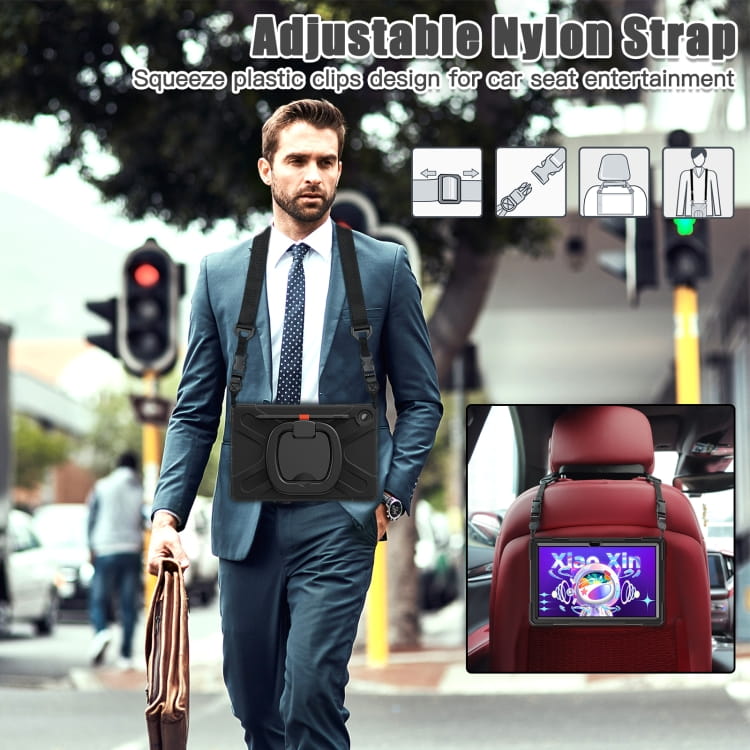 Shockproof Pancerne Etui z Paskiem, Uchwytem do Lenovo Tab M10 Plus 10.6 czarne