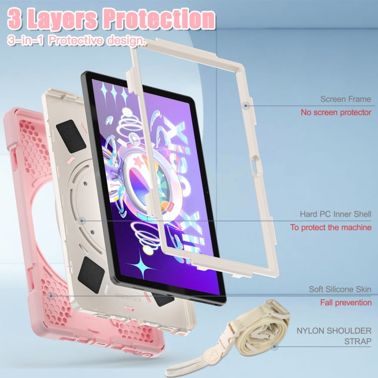 Shockproof Pancerne Etui z Paskiem, Uchwytem do Lenovo Tab M10 Plus 10.6 różowe