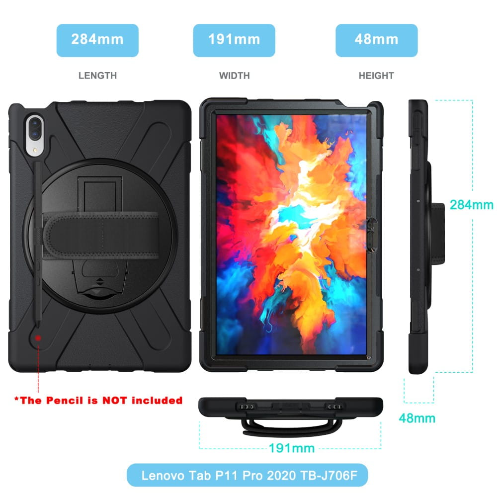 Pancerne Mocne Etui z Uchwytem i Paskiem do Lenovo Tab P11 Pro czarne