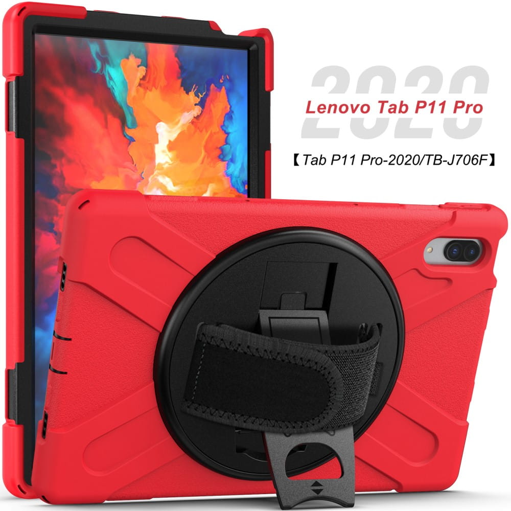 Pancerne Mocne Etui z Obrotowym Uchwytem do Lenovo Tab P11 Pro czerwone