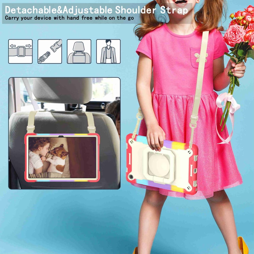 - Pasek na ramię: pasek jest regulowany i odpinany, co jest łatwe w użyciu i wygodne do zawieszenia tabletu na ramieniu lub w samochodzie