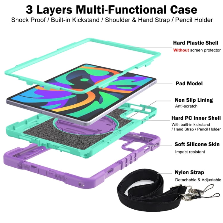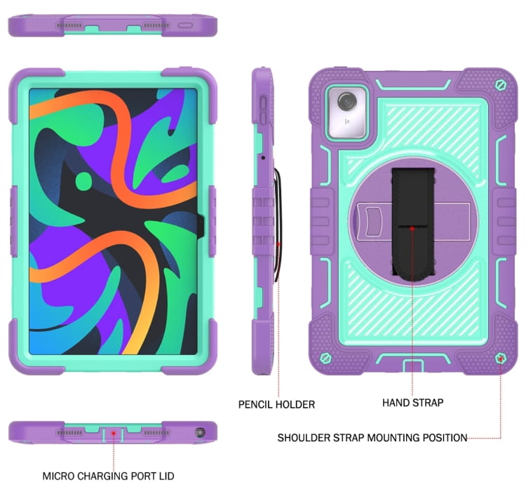 Shockproof Pancerne Mocne Etui z Uchwytem do Lenovo Tab M11 fioletowo-miętowe