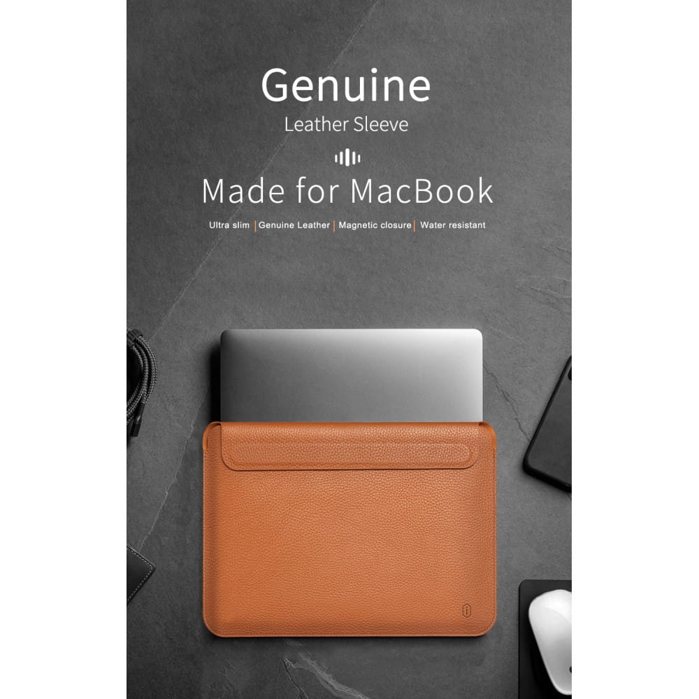 Skórzany pokrowiec na laptopa jest wykonany z prawdziwej skóry bydlęcej o szczegółowym wykonaniu, który wygląda delikatnie i jest trwały przez długi czas. Dzięki wbudowanemu magnesowi Twój laptop jest bezpieczny w pokrowcu na laptopa. Ten pokrowiec na laptopa zapewnia ochronę przed codziennym zużyciem, zadrapaniami, śladami i zadrapaniami.