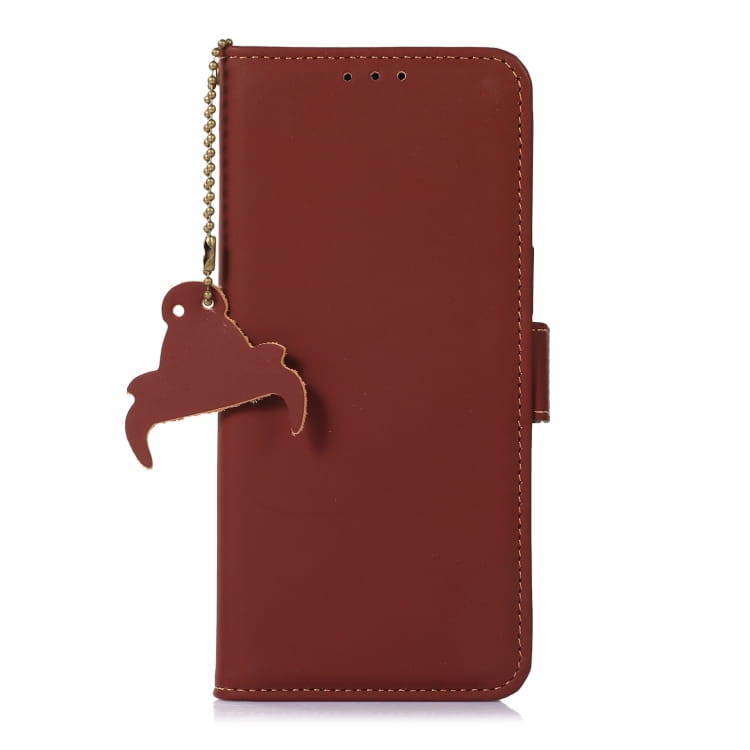 Skórzane Etui z Klapką Pokrowiec RFiD do iPhone 15 bordowe