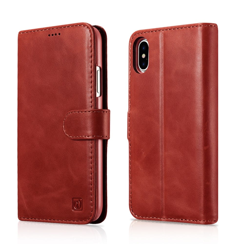 Skórzany Portfel Etui iCARER iPhone X (TEN) czerwony