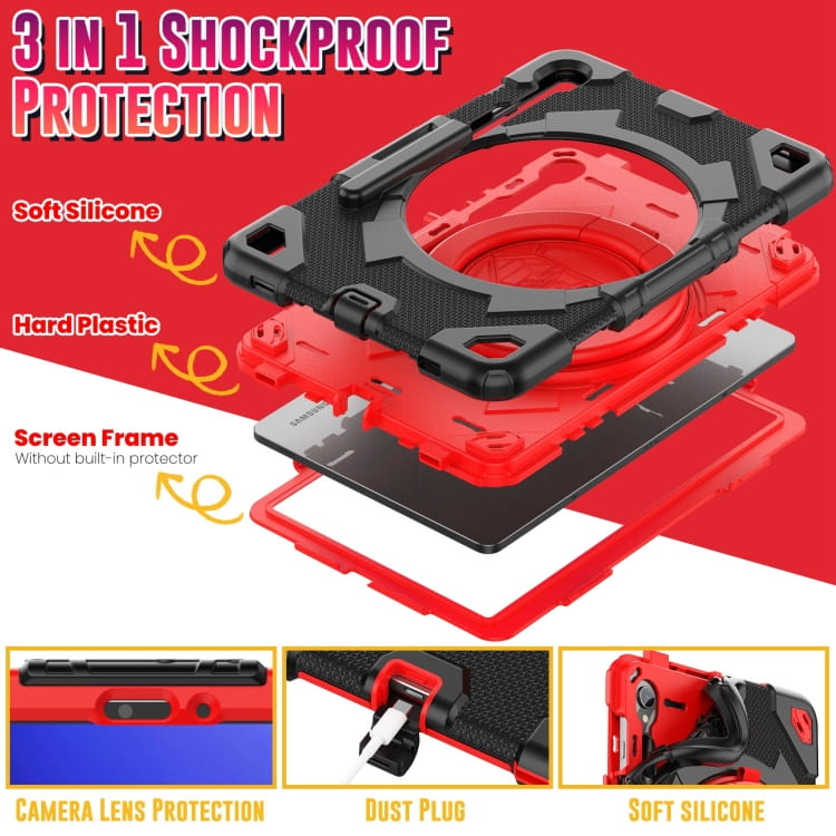 Spider Pancerne Etui z Uchwytem do Samsung Galaxy Tab S9 czerwono-czarne