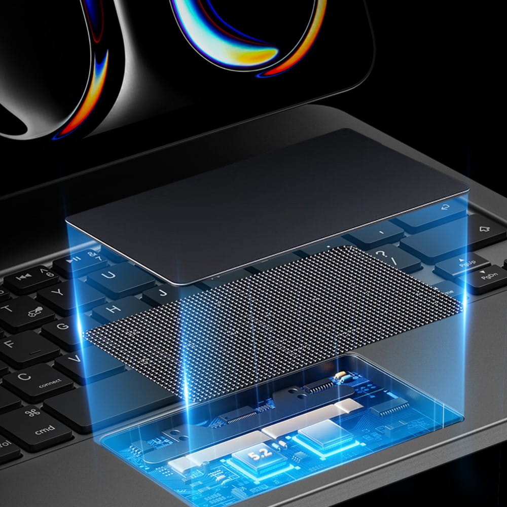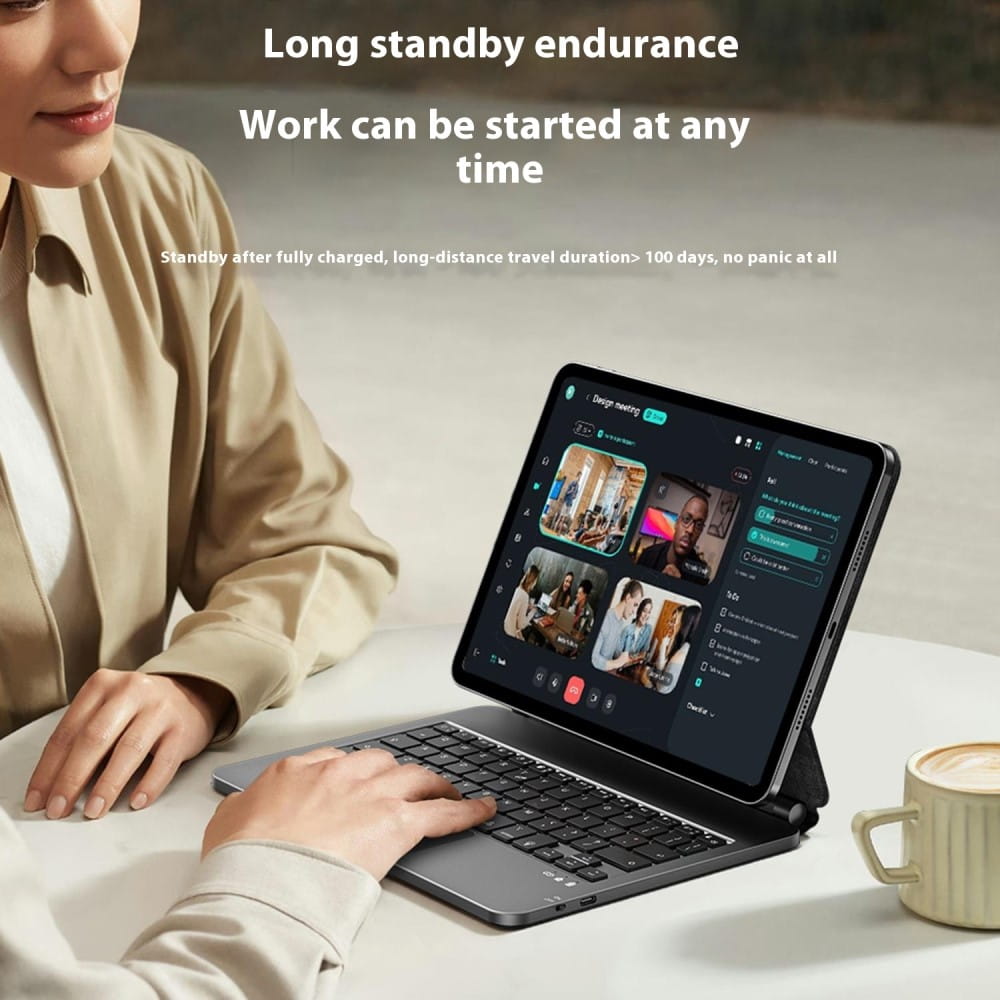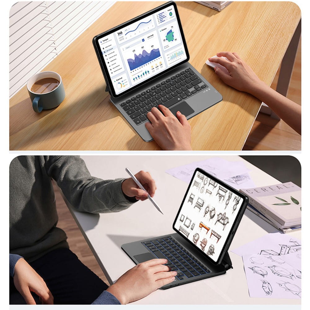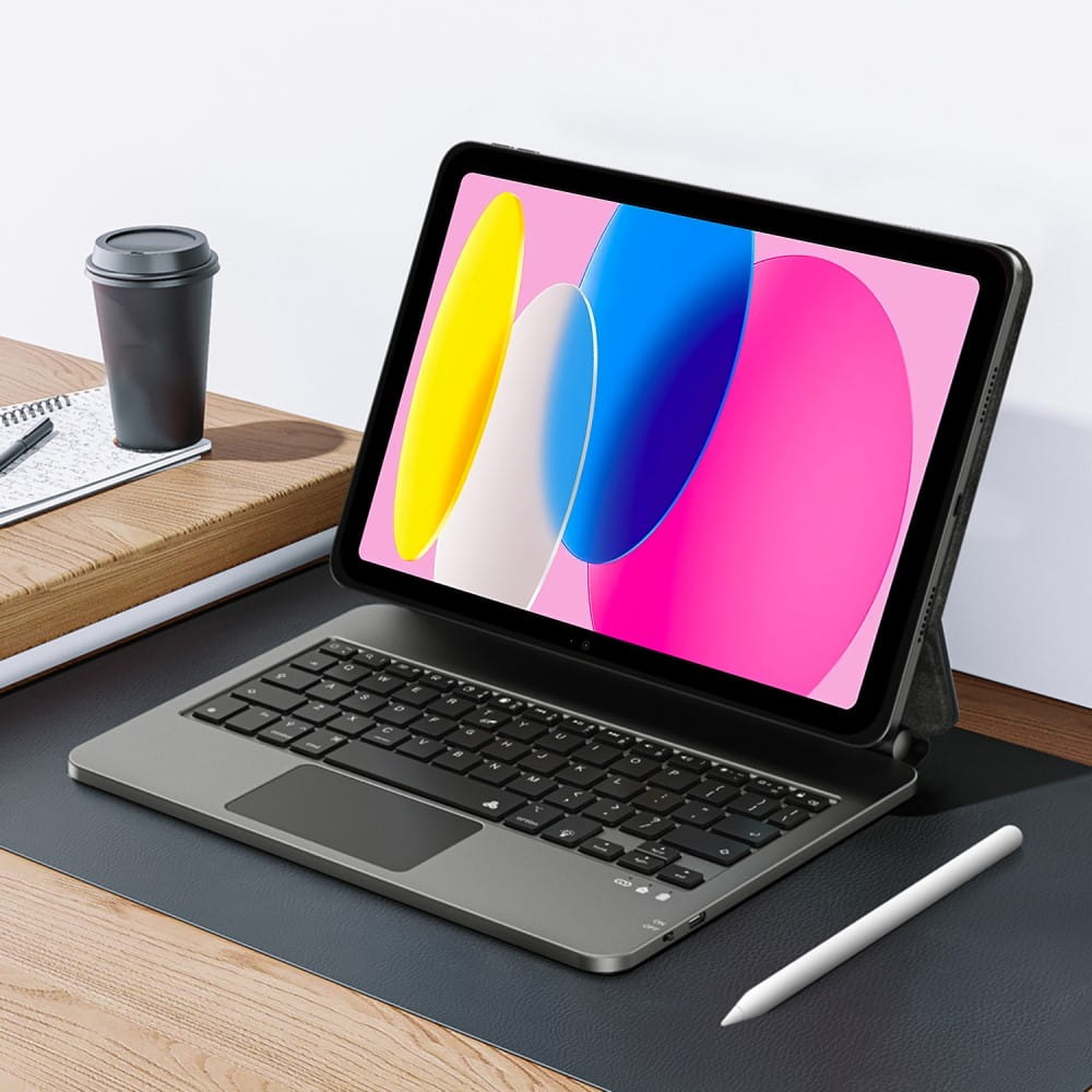 Eleganckie i stylowe etui idealnie dopasowane do Twojego iPada 11/10. Zabezpiecza urządzenie przed zarysowaniem, upadkiem czy zabrudzeniami przy jednoczesnym dostępie do wszystkich przycisków i portów bez konieczności wyjmowania iPada. W zestawie znajduję się również magnetyczna klawiatura, którą łączy się z tabletem za pomocą Bluetooth. Zasilana jest wydajną wbudowaną baterią, którą ładuje się za pomocą kabla USB. Magnetyczna podstawa umożliwia wygodne dopasowanie pozycji klawiatury podczas pisania. Dodatkową zaletą pokrowca jest funkcja podstawki oraz niewielkie wymiary. Wystarczy wygodnie ustawić tablet na biurku czy stole aby przeglądać treści czy pisać na klawiaturze. Etui z klawiaturą tworzą z Twoim urządzeniem idealny, mobilny i elegancki zestaw do szkoły czy pracy. Wbudowany touchpad znacznie zwiększa funkcjonalność klawiatury.
