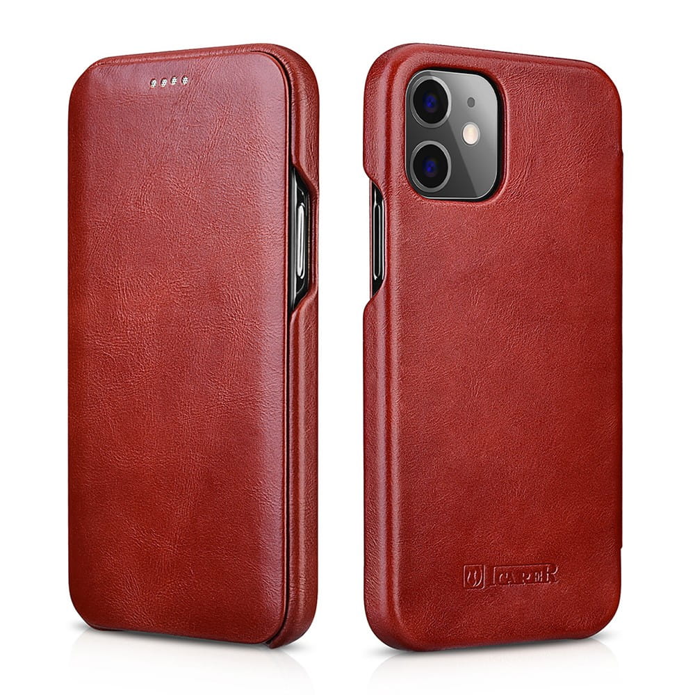 iCarer Skórzane Etui Pokrowiec iPhone 12 / 12 Pro czerwony